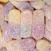 Ingrédients : Sucre, sirop de glucose, amidon de pomme de terre, eau, gélatine, acidifiants : E296, E330, arômes, colorants : E100, E120, E141, E160E.