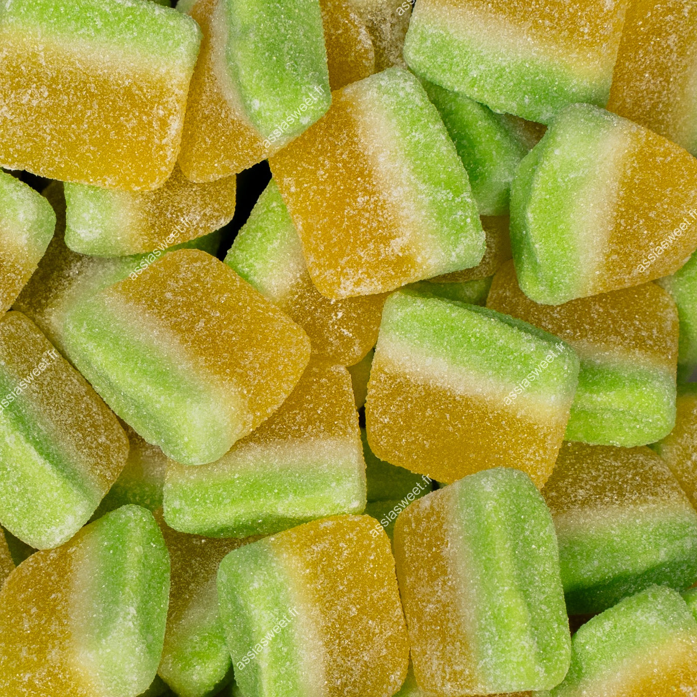 INGREDIENTS: Sirop de glucose, sucre, eau, gélatine, acidulants : E330, E296, E270, Gélifiant : pectine, arômes, colorants : E102, E150c, E171, agent d'enrobage : huile végétale (palme) et cire de carnauba.