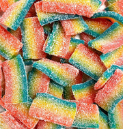 Bonbons en forme de petit tapis multicolores aux couleurs de l'arc en ciel.