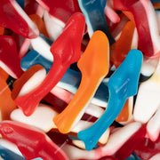 Les délicieux requins colorés. INGREDIENTS: Sirop de glucose, sucre, eau, gélatine, acidulant, E330, E270, gélifiant, pectine, agent d'enrobage : huile...