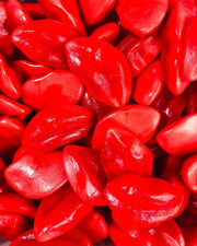 Bonbons en forme de lèvre rouge. Ingrédients: Sirop de glucose, sucre, eau, gélatine de bœuf, amidon modifié de pomme de...