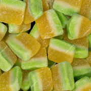 INGREDIENTS: Sirop de glucose, sucre, eau, gélatine, acidulants : E330, E296, E270, Gélifiant : pectine, arômes, colorants : E102, E150c, E171, agent d'enrobage : huile végétale (palme) et cire de carnauba.